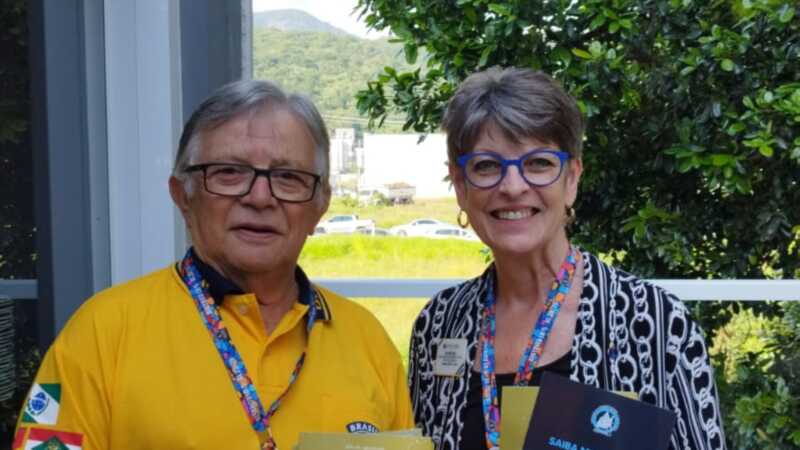 A cidade de Balneário Camboriú recebeu no último dia 25 de abril a visita da Dra. Patti Hill, líder internacional do Lions Clubs, na foto, acompanhada do companheiro Valdir Reis, ex-governador distrital. Antes da convenção, Patti Hill também esteve na região, participando de encontros locais e reforçando o espírito de união e serviço que caracteriza o leonismo.